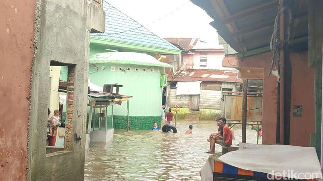 "Udah biasa lah banjir gini tiap tahun ada selalu. Ini udah masuk hari ketiga, airnya pasang surut, kemungkinan naik lagi kalau cuaca kayak gini," kata Soni, warga setempat.