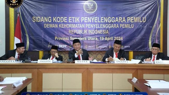 Dewan Kehormatan Penyelenggara Pemilihan Umum (DKPP) menggelar sidang pemeriksaan terkait dugaan pelanggaran etik anggota KPU Padang Lawas Utara (Paluta) Wiga Haryadi. Pemeriksaan itu terkait dugaan pemalsuan kartu tanda penduduk (KTP) saat mengikuti seleksi calon anggota KPU Paluta periode 2023-2028.