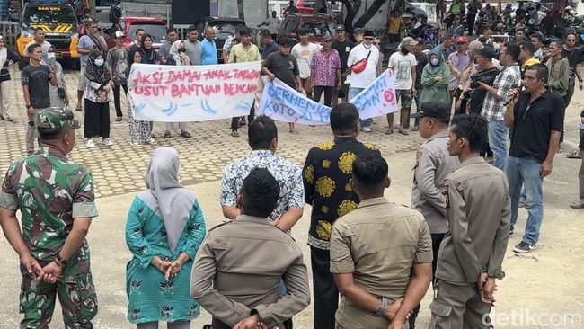 Pantauan detikSumut di lapangan, massa berunjuk rasa sambil membawa sejumlah spanduk tuntutan, antara lain bertuliskan Berhentikan Camat Koto XI Tarusan, Usut Bantuan Bencana atau Lantik segera Wali Nagari Terpilih.