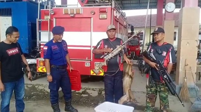 "Hari ini kita cari lagi keberadaan monyet ini di sekitar rumah warga bersama dengan rekan-rekan dari Perbakin. Ternyata kita dapat laporan lagi si monyet ini di atas seng rumah dan mau menyerang orang lagi, langsung di situ kita sigap langsung dilumpuhkan (tembak)," ujarnya.