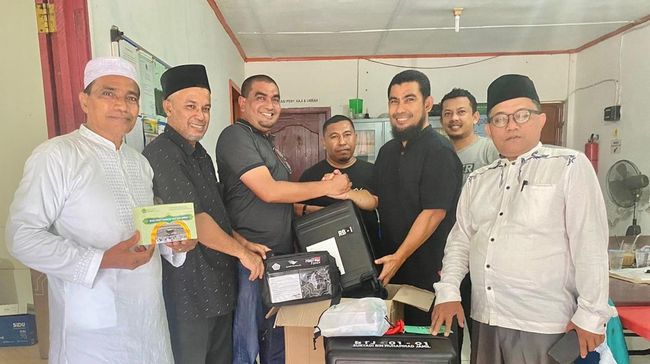 Jemaah calon haji asal Aceh Besar menerima koper dari Kemenag setempat menjelang keberangkatan ke Tanah Suci. Mereka diingatkan tidak membawa barang tidak perlu dan dilarang dalam penerbangan.