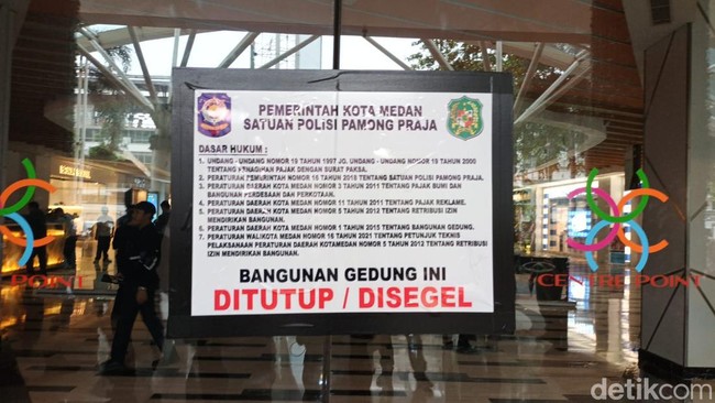 Mal tersebut, pada Rabu (15/5/2024), disegel Pemkot Medan dengan pemasangan spanduk di depan pintu mal oleh petugas Satpol PP Kota Medan.