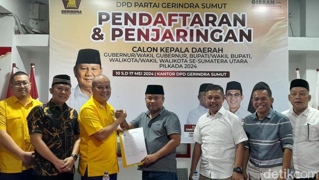 Sementara Sugiat Santoso menyebutkan jika hingga saat ini sudah ada 9 orang yang mendaftar ke Gerindra Sumut untuk Pilgub. Gerindra sendiri akan menutup pendaftaran hari ini, tepat pukul 23.59 WIB.