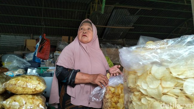 "Rata-rata sekarang laku perhari 500 ribu tapi kita harus bayar barang dagangan milik orang, belum lagi beli bahan untuk keripik, termasuk minyak. Sisanya cukup untuk makan saja," katanya.