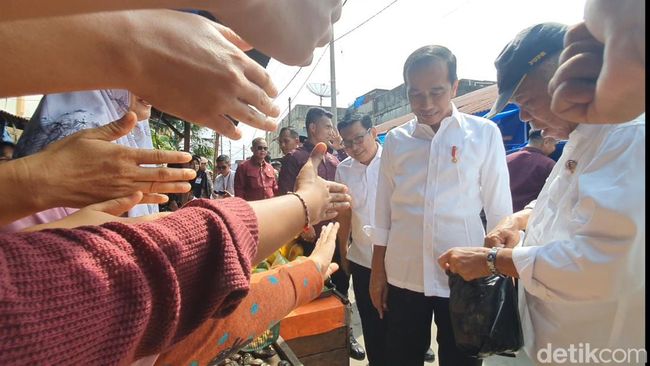 Presiden Jokowi bersama Menteri PUPR Basuki Hadimoeljono dan Penjabat Gubernur Riau SF Hariyanto berkunjung ke Pasar Senggol, Dumai. Di sana, Jokowi dan Basuki belanja kaus kaki hingga jengkol dari pedagang.