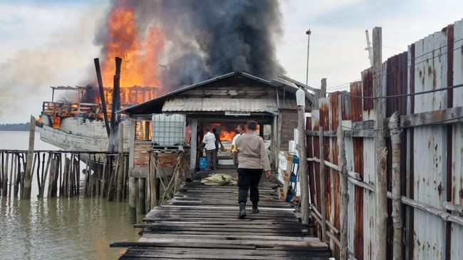 "Karena kondisi tempat bersandar kapal tersebut adalah pelantar yang terbuat dari kayu dan berdekatan dengan rumah warga. Kemudian KLM. Sukses Perkasa harus dihanyutkan ke laut guna proses pemadaman lanjutan," ujarnya.