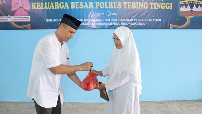 "Selain melakukan penyembelihan di Polres Tebing Tinggi, sebanyak 15 ekor kambing disembelih di Polsek jajaran agar pembagian daging kurban dapat merata dan langsung dirasakan masyarakat yang membutuhkan," kata Anjas, Senin (17/6/2024).