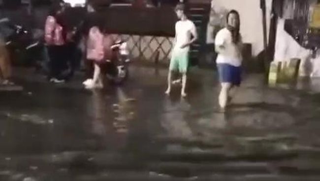 "Sudah biasa ini, kalau hujan deras memang akan banjir," ucapnya.