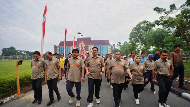 Kapolda Riau Irjen Mohammad Iqbal hingga Pj Gubernur SF Hariyanto gelar olahraga bersama di Mapolda Riau. Hal itu merupakan rangkaian dalam memeriahkan Hari Bhayangkara ke-78.