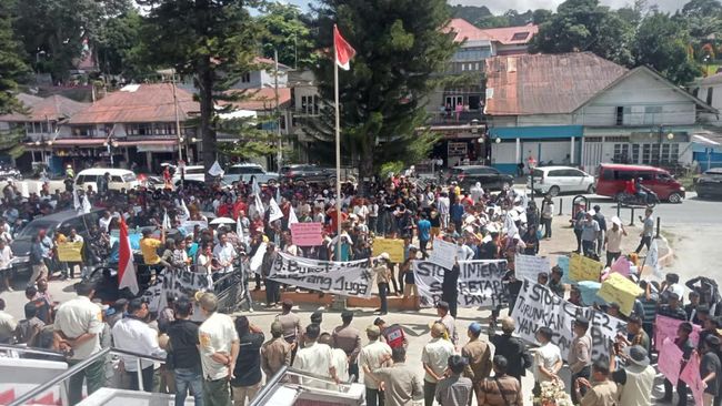 "Dengan dasar hal tersebut, menuntut agar Pj Bupati Taput Dimposma Sihombing mundur dari jabatannya," isi tuntutan massa.