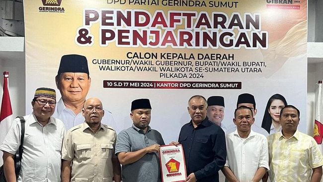 "Iya (mendaftar ke Gerindra) sebagai calon Bupati Madina," kata Sekretaris DPD Gerindra Sumut Sugiat Santoso saat dihubungi, Jumat (5/7/2024).