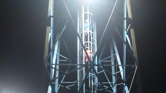 "Kejadian Pukul 00.30 WIB. Saat saya pulang beli makan sudah ramai warga dekat sini. Awalnya dia di tengah tower. Tapi karena ramai yang manggil dia untuk turun akhirnya dia naik makin ke atas hingga ujung," kata Aan, Sabtu (6/7/2024).