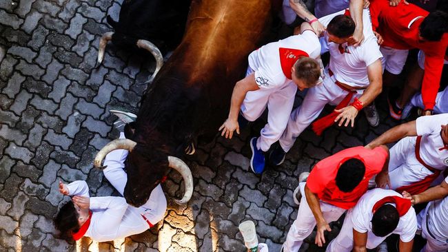 Jakarta - Festival lari 'dikejar' banteng di Spanyol memakan korban. Lima orang dilaporkan terluka saat berlari menghindari banteng pada Sabtu (13/7).