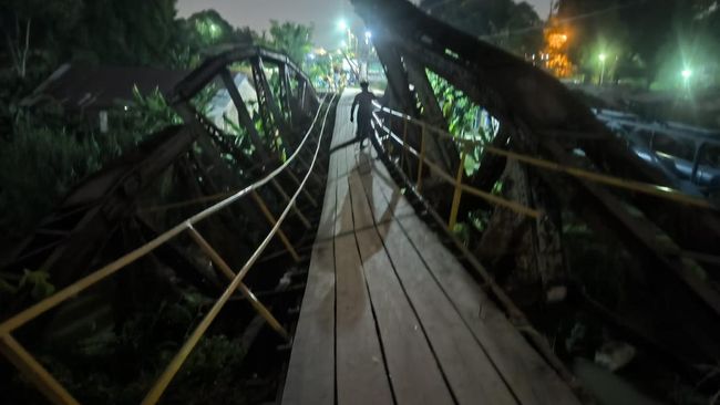 "Tadi malam Pak Wali datang, mereka cek jembatan dan membuat policy line ini, mengimbau sama kami supaya titi ini jangan dilalui lagi," ujarnya.