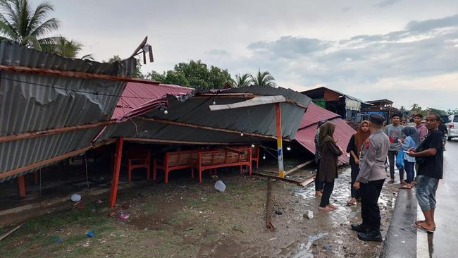 Peristiwa itu terjadi pada Kamis (18/7) sore kemarin. Berdasarkan data dari 23 desa di kecamatan tersebut, bangunan yang rusak di antaranya 90 unit rumah, enam toko, tiga kafe, 70 lapak pedagang serta empat kios.