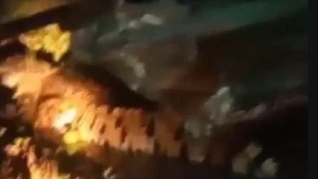 Sidoarjo - Kemunculan buaya berukuran besar bikin heboh warga Desa Kedungpeluk. Buaya itu disebut sering muncul di tepian sungai Kedungpeluk Sidoarjo.