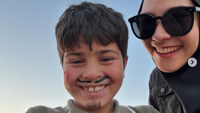 Dalam unggahan itu, tampak Zaskia bermain dan menghibur anak-anak di tenda pengungsian. Ia tampak melukis wajah seorang anak laki-laki dengan pewarna.