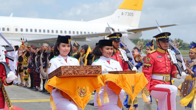 Jakarta - Kirab duplikat bendera pusaka Merah Putih dan teks proklamasi telah tiba di Ibu Kota Nusantara (IKN). Bendera pusaka siap untuk dikibarkan dalam upacara HUT ke-79 RI pada 17 Agustus 2024 mendatang. Begini momennya.