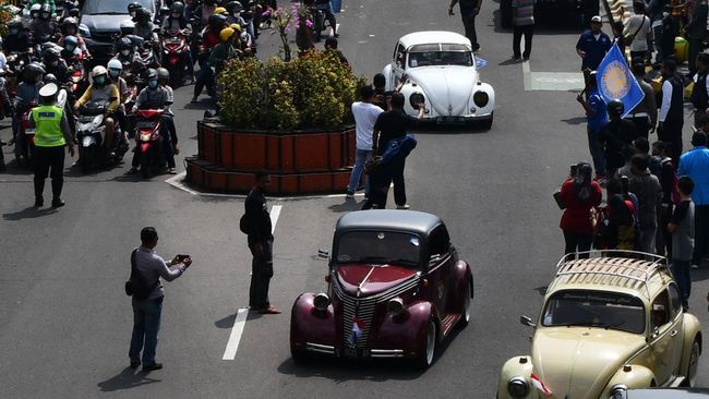 Rayakan HUT Ke-79 RI, Ratusan Mobil Kuno Tur Keliling Kota