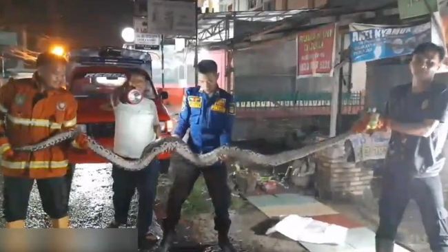 Kejadian mengejutkan sekaligus bikin heboh warga terjadi di Jalan Sisingamangaraja, Kisaran, Kabupaten Asahan, Sumatera Utara. Saat itu seekor ular piton sepanjang empat meter ditemukan terjebak di saluran air rumah warga.