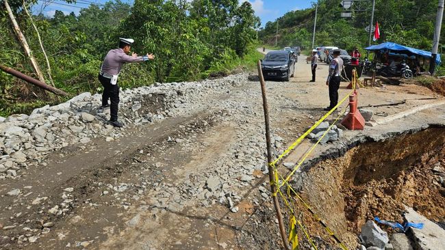 "Tadi malam antrian panjang sampai 7 KM dari kedua arah karena masyarakat belum tahu jalan amblas. Kami urai sampai pukul 04.00 WIB tadi dan kami sampaikan pada masyarakat dan pengendara banyak sudah lewat jalut alternatif," kata Vino.