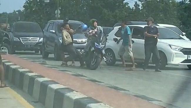 Jakarta - Aksi pengeroyokan menimpa seorang pengendara motor di Bandar Lampung. Pelaku yang merupakan pengatur lalu lintas ilegal atau 'pak ogah' itu ditangkap polisi.