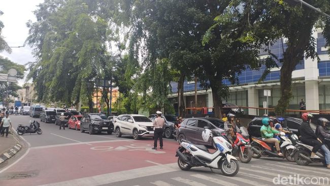 Berdasarkan pantauan detikSumut, Jumat (23/8/2024) sore arus lalu lintas dari Jalan Perdana Medan alami kemacetan. Pihak kepolisian tampak bersiaga mengalihkan arus kendaraan.