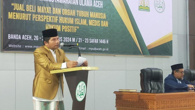 Fatwa tentang Jual Beli Mayat dan Organ Tubuh Manusia Menurut Perspektif Hukum Islam, Medis dan Hukum Positif itu diputuskan MPU Aceh dalam sidang paripurna IV yang berlangsung di Gedung Tgk. H. Abdullah Ujong Rimba MPU Aceh, Rabu (28/8). Rancangan Fatwa MPU Aceh Nomor 4 Tahun 2024 itu dibacakan Kepala Bagian Persidangan Sekretariat MPU Aceh Ahmad Taufik sebelum disahkan.