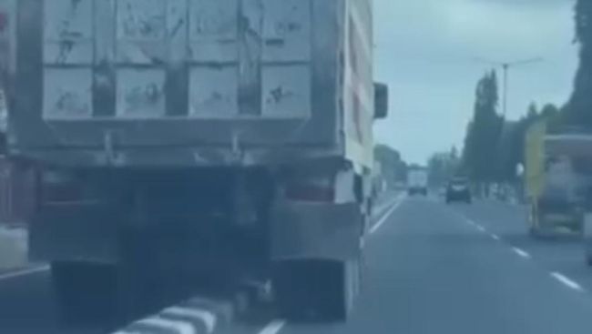 Viral Truk Melintas 'Kangkangi' Pembatas Jalan
