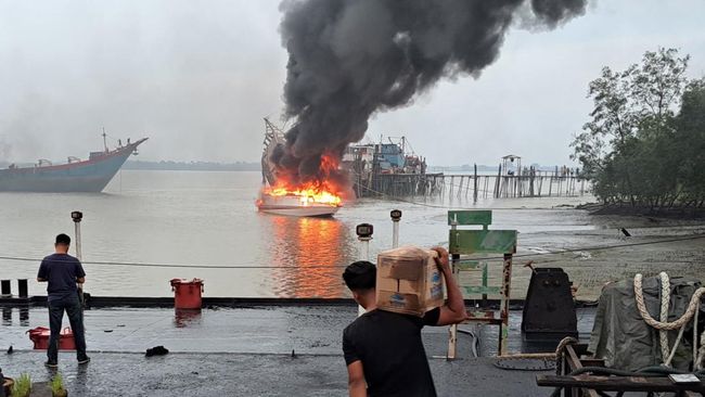 "Kalal mengalami masalah mati mesinnya setelah jalan sekitar 200 meter. Kapten kapal mencoba menghidupkan kembali. Saat itulah muncul percikan api saat awal starter mesin," kata Kurnia.