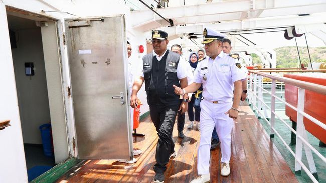 Kedatangan KM Kelud disambut Pj Gubernur Aceh Safrizal ZA dan sejumlah pejabat terkait, Rabu (4/9/2024). Dia sempat mengecek fasilitas kapal mulai kamar kelas ekonomi, kelas II dan kelas I, serta ruang makan.