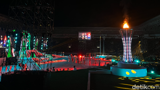 Tak beberapa lama, Obor raksasa yang berada di tengah lapangan padam dan langsung disambut meriah belasan ribu penonton di stadion utama Sport Center, Deli Serdang.