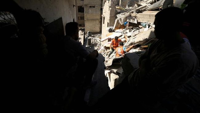 Jakarta - Israel melakukan penyerangan terhadap sebuah sekolah yang menampung pengungsi di selatan Kota Gaza, Sabtu (21/9). Insiden itu menewaskan sedikitnya 22 orang. Adapun para korban terdiri dari 13 anak-anak, termasuk bayi 3 bulan dan enam wanita.