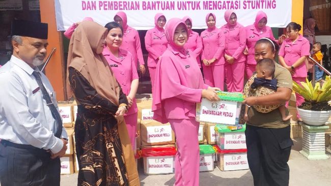 Selain pelatihan, Bhayangkari juga memberi bantuan berupa paket makanan bergizi dan suplemen. Bantuan ini diharapkan dapat membantu memenuhi kebutuhan gizi anak yang mengalami stunting atau berisiko.