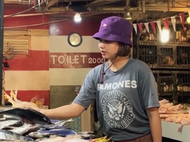 Dia terlihat menyusuri pasar tradisioanl itu dengan membawa tas belanja anyaman. Di pasar, Indah membeli aneka bahan makanan, mulai dari daging ayam, cumi, ikan, sayuran, hingga daging sapi.