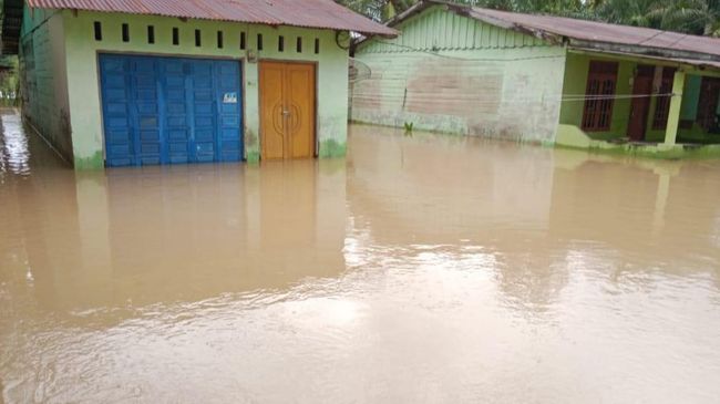 Banjir dengan ketinggian sekitar 30 sentimeter hingga 70 sentimeter juga melanda sejumlah desa di tiga kecamatan di Aceh Singkil, Minggu (13/10). Banjir menyebabkan terendamnya sekolah, masjid hingga Pustu.