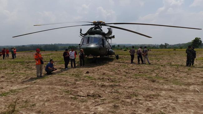 Blora - Helikopter TNI AD berjenis Mi-17 mendarat darurat di area persawahan di Desa Kadengan, Blora, Jawa Tengah, diduga karena helikopter mengalami gangguan mesin. Warga di sekitar lokasi pun datang ramai-ramai untuk melihat heli tersebut.