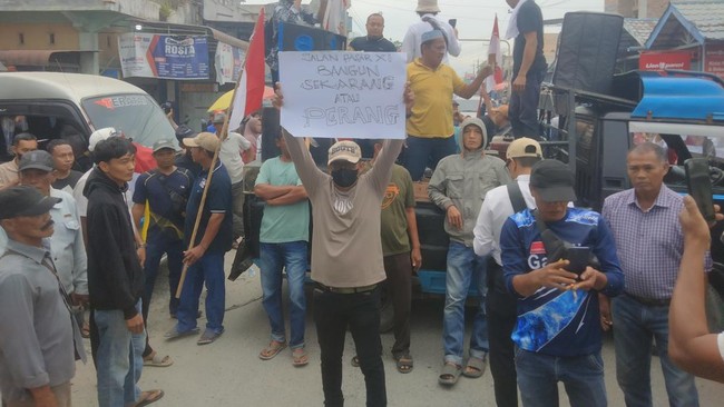 "Kami aksi soal jalan ini sudah delapan kali. Capek kami dibohongi terus terusan, sampai hari ini proyek perbaikan jalan Rp 2,7 Triliun di Air Joman ini tak pernah terealisasi," kata Koordinator lapangan aksi Zulkifli Matondang.