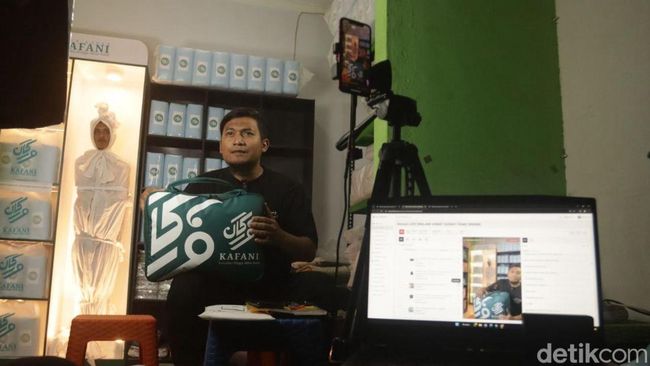 Kafani Yoka Brahma Putra berhasil cuan setelah menjual kain kafan secara live lewat TikTok. Dia tidak menyangka yang dilakukannya itu viral hingga berdampak pada meningkatkan penjualan kain kafan miliknya.