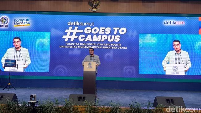Acara detiksumut #GoesToCampus digelar di Auditorium Universitas Muhammadiyah Sumatera Utara (UMSU), hari ini. Dalam momen itu Wakil Rektor III UMSU Assoc. Prof Rudianto mendorong mahasiswa masuk ke dunia jurnalistik.