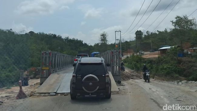Selain itu, kendaraan bertonase berat juga masih melintas di sisi bawah jalan tanah. Bahkan, beberapa kendaraan sempat mogok karena kondisi jalan tanah sulit dilalui.