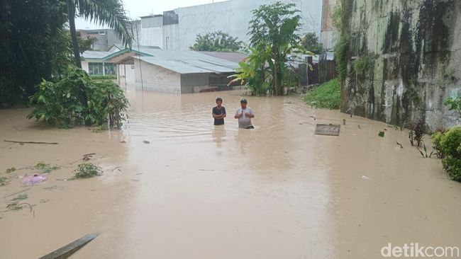 Banjir merendam komplek PPKS di Jalan DC Barito, Kelurahan Suka Damai, Kecamatan Medan Polonia, sejak pukul 03.00 WIB tadi. Petugas gabungan lalu mengevakuasi ratusan warga ke tempat aman.
