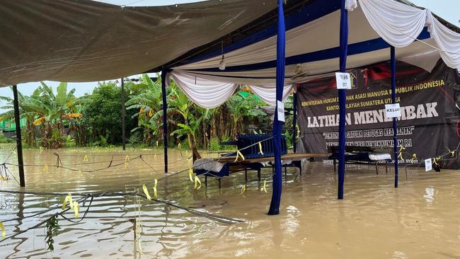 Sejumlah TPS Pilkada 2024 di Kabupaten Deli Serdang, Sumatera Utara (Sumut) terpaksa tidak bisa beroperasi karena terendam banjir. Banjir sudah terjadi sejak pagi.