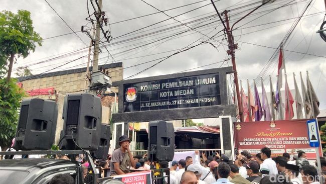Berdasarkan pantauan detikSumut, Jumat (29/11/2024), pukul 14.30 WIB, massa berkumpul di depan Kantor KPU Kota Medan di Jalan Kejaksaan. Mayoritas massa yang terdiri dari pria dan wanita ini mengenakan pakaian putih sambil membawa spanduk berisi tuntutan mereka.