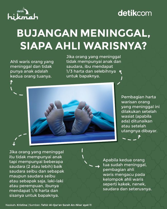 Jakarta - Setiap orang yang meninggal dunia akan mewariskan hartanya kepada anak-anak mereka. Lantas bagaimana dengan orang yang meninggal dunia ketika masih bujangan? Siapa ahli warisnya?
