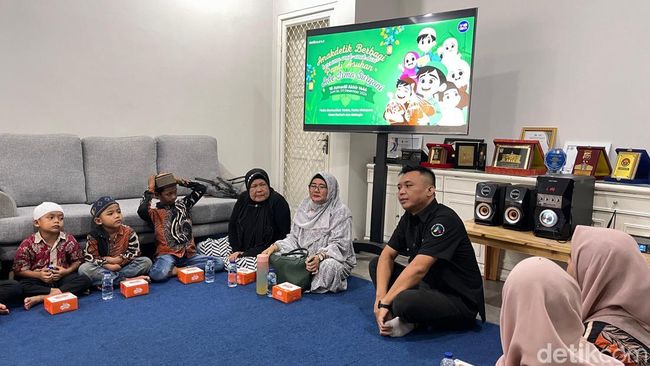 Puluhan anak yatim dan piatu terlihat hadir bersama pengasuhnya, Arna. Puluhan anak-anak tersebut terlihat ceria saat memasuki Kantor detikSumut sembari melihat ruangan yang ada di kantor.