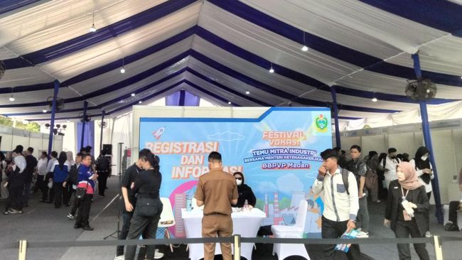 Pantauan tim detikSumut di lokasi pada Senin (23/12/2024), ratusan pengunjung mulai memadati job fair BBPVP (Balai Besar Pelatihan Vokasi dan Produktivitas) Medan sejak pagi hari. Puluhan stand dari berbagai perusahaan terlihat sudah dibuka dan ramai dikunjungi oleh para pencari kerja.
