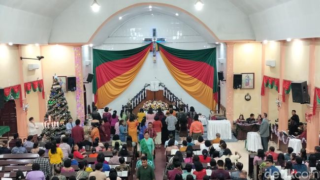 Umat Kristiani hari ini merayakan Malam Natal di gereja. Di HKBP Tegal Rejo Jalan Sehati, Medan dilaksanakan perjamuan kudus (Ulaon Nabadia) dengan khusyuk saat ibadah.