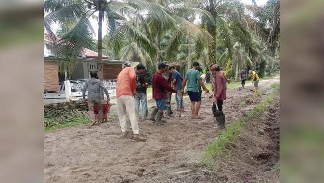 Warga dua dusun di Desa Sei Lama, Kecamatan Simpang Empat, Kabupaten Asahan, Sumatera Utara (Sumut) bergotong royong memperbaiki jalan di kampung mereka. Bahkan warga patungan mengumpulkan uang untuk memperbaiki jalan tersebut.