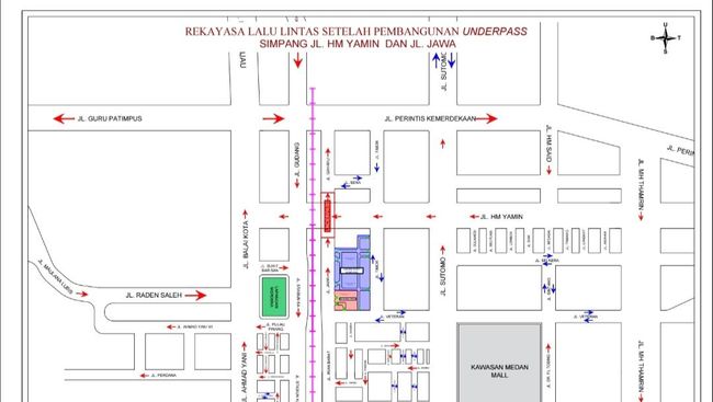 Wali Kota Medan Bobby Nasution meresmikan Underpass HM Yamin di persimpangan Jalan HM Yamin dan Jalan Jawa-Gaharu, Medan. Berikut rekayasa arus lalu lintas di sekitar underpass HM Yamin usai diresmikan.